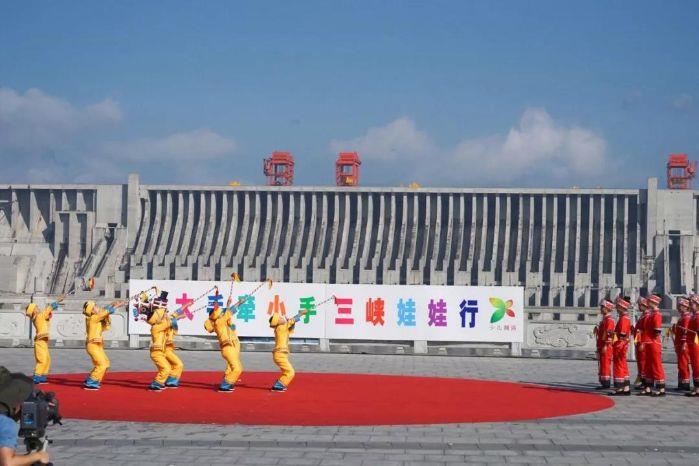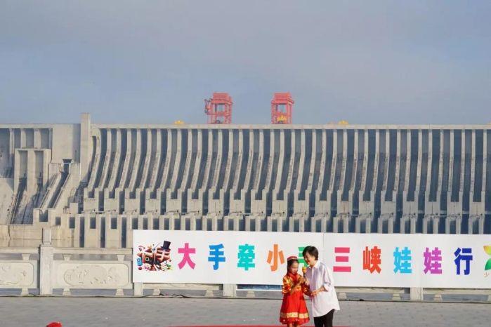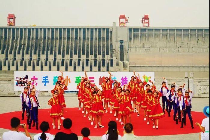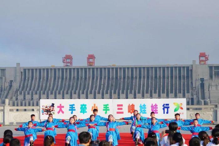 大手牵小手,向着快乐走。演出在观看“大国重器”三峡工程的最佳观景点——三峡截流园举行。生态园林为舞台,世纪巨坝作背景,有“大手牵小手,三峡娃娃行”字样的五彩横幅悬挂在舞台正前方,一切都是原汁原味。