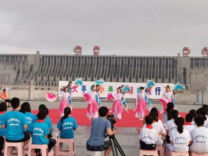暑天烈日下,朴实的歌词,动感的节奏,优美的旋律,感染着在场每一个孩子的心。《大手牵小手》特别节目让孩子们在三峡坝区留下终生难忘的记忆。