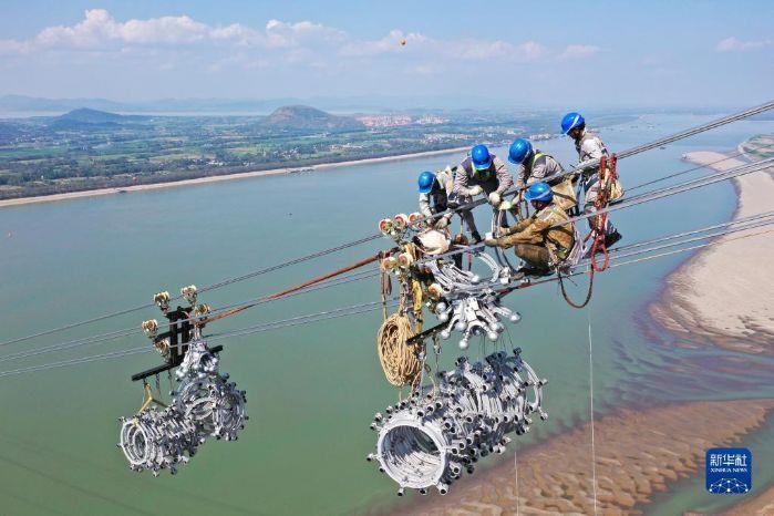 9月13日下午,历经13天的连续施工,“西电东送”大动脉白鹤滩—浙江±800千伏特高压直流输电工程重庆段顺利完成长江大跨越放线作业,标志着“西电东送”工程取得重大进展。