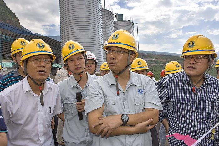 | 樊启祥(中)在乌东德筹建工程现场检查指导工作。(黄正平 摄) |