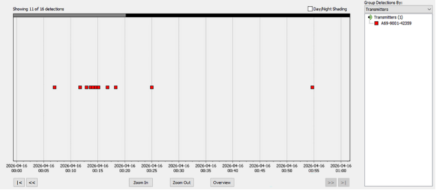 ▲ 江苏省江阴站点监测到的放流中华鲟声学信号