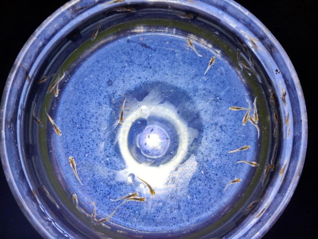 2025年,科研团队以子一代长鳍吻鮈人工群体为研究对象,探索小瓜虫病防控、环境调控与营养调控等综合技术手段,成功将子一代亲鱼调控成熟,繁殖培育子二代鱼苗1万余尾,目前鱼苗体长2-3厘米,长势良好。