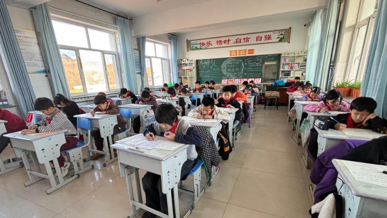 ▲ 白音沟小学的学生们在温暖的教室内上课