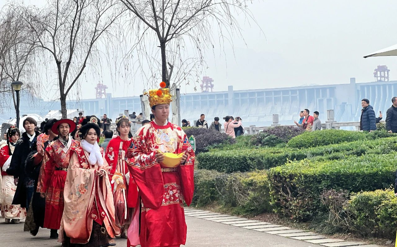“春节假期来宜昌旅游,不仅看到了三峡大坝的壮丽风光,还观看了尽显国潮魅力的汉服秀表演,对我们中华民族优秀传统文化有了更加深厚的感情和认同感。”来自湖南的周女士说。