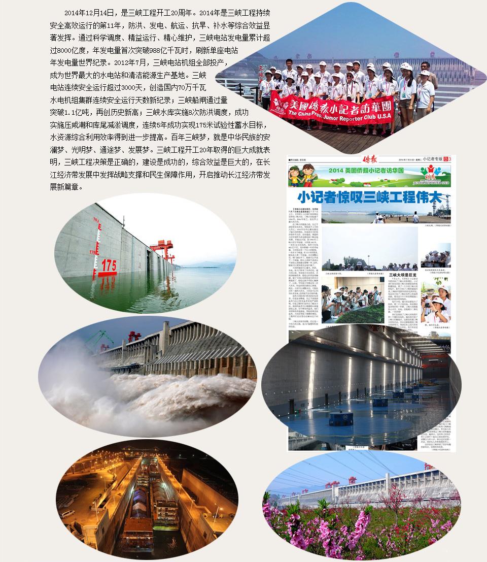 2014年12月26日,随着三峡集团呼和浩特抽水蓄能电站2号机组成功投产发电,三峡集团总装机规模突破5000万千瓦,清洁电能比重达到100%,标志着三峡集团在致力于建设全球最大、世界一流的清洁能源集团的道路上又迈出了具有历史意义的重要一步。三峡集团5000万千瓦装机中,拥有58台70万千瓦以上的大型水轮发电机组,占全球数量的一半以上。 2014年,三峡集团总发电量突破2000亿千瓦时。如果每千瓦时电能对GDP的贡献按10元计算,三峡集团全年发出的清洁电能,相当于为国家创造了近2万亿元财富,为国家“稳增长、调结构、惠民生”注入了强大动力。 2014年,工程建设、枢纽运行、生产经营创造了一系列新纪录,发电量、营业收入、利润总额增幅创近十年最好水平,装机容量、营业收入、利润总额基本实现“十二五”“翻番”目标,全面超额完成国资委“保增长”目标,具备连续八年进入国资委经营业绩考核A级企业条件,实现了规模和效益的同步快速增长,三峡集团发展迈上了新台阶。 |