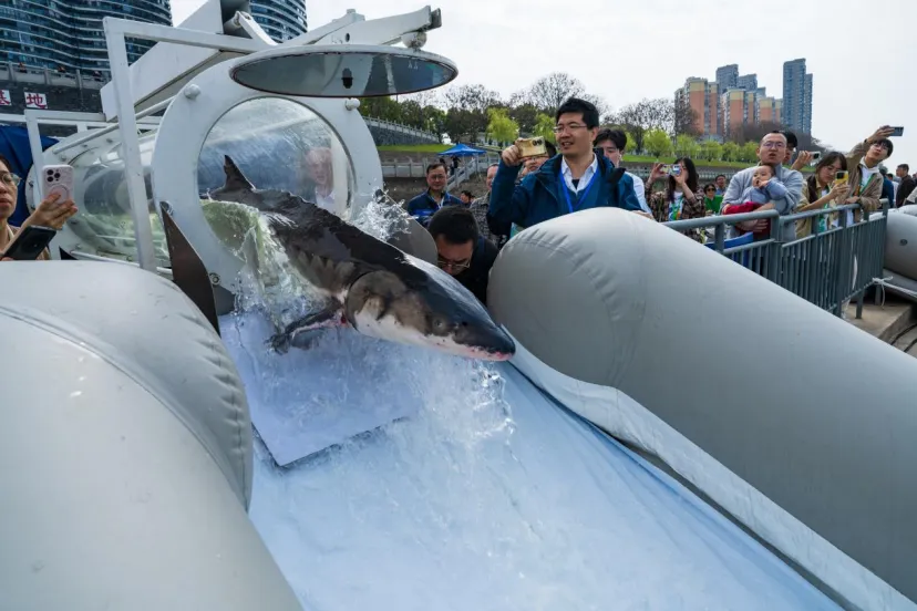 ▲ 3月28日,在中华鲟增殖放流现场等待回归长江的中华鲟 摄影:毛翔春